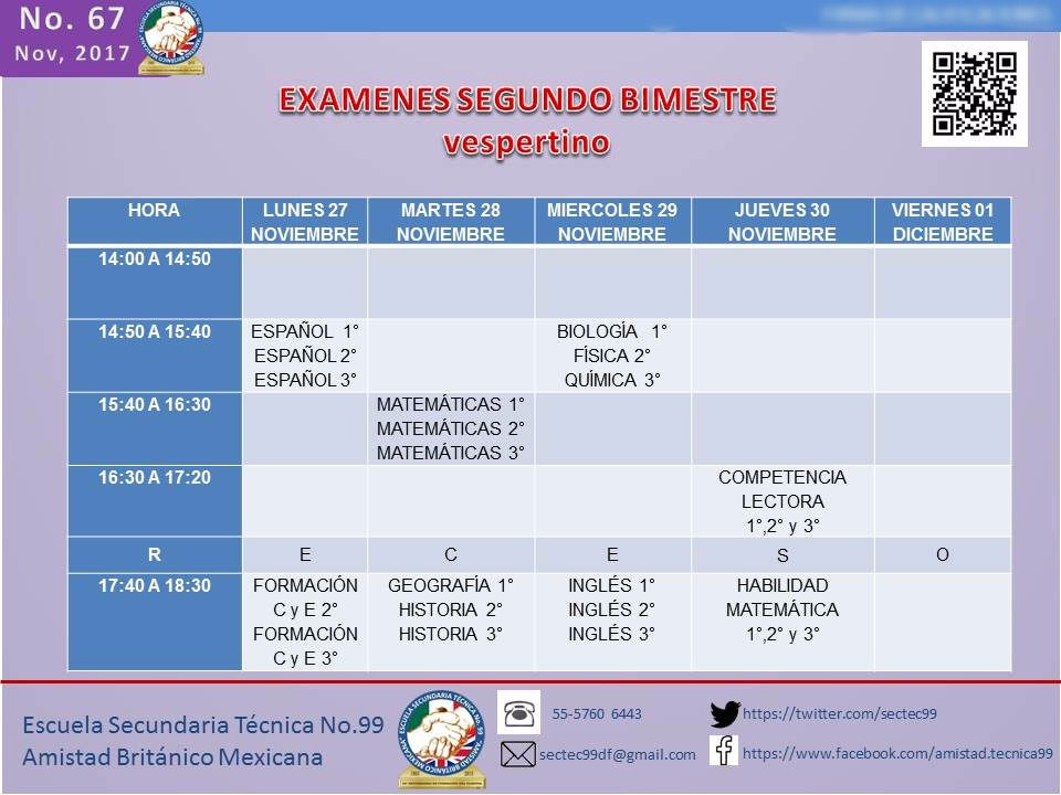 Aviso 66 y 67EST 99 ABM24 nov 20171 Min. de lecturaCalendario de exámenes de correspondientes al segundo bimestre.